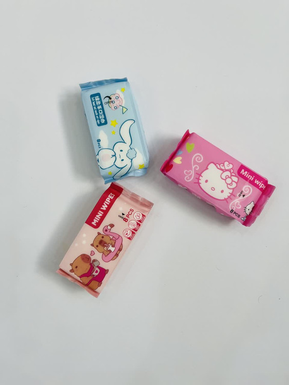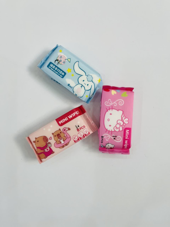 دستمال مرطوب جیبی ۸عددی با طرحهای فانتزی سانریو؛ سبک و قابلحمل، مناسب کیف و سفر. با رایحهی ملایم، فاقد الکل و پارابن، سازگار با پوستهای حساس. دارای درِ چسبی برای حفظ رطوبت. گزینهای دوستداشتنی برای استفادهی روزانه، مدرسه و سفر.