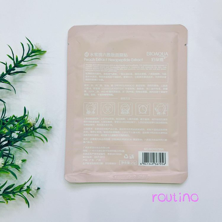 سلام قشنگا امروز یه ماسک خوشگلِ صورتیِ خوشمزه براتون موجود کردم فقط کافیه یکبار ازش استفاده کنی مطمئننننم عاشقش میشی ماسک ورقهای هلو از برند محبوب BIOAQUA حاوی عصاره شکوفه هلو حاوی ویتامین c آبرسان و مرطوب کننده روشن کننده و درخشان کننده لایهبردار پوست جلوگیری از خشکی پوست ضد چین و چروک شاداب کنننده جوانساز پوست ترمیم آفتابسوختگی پوست اگه داشتی بده و سیو یادت نره