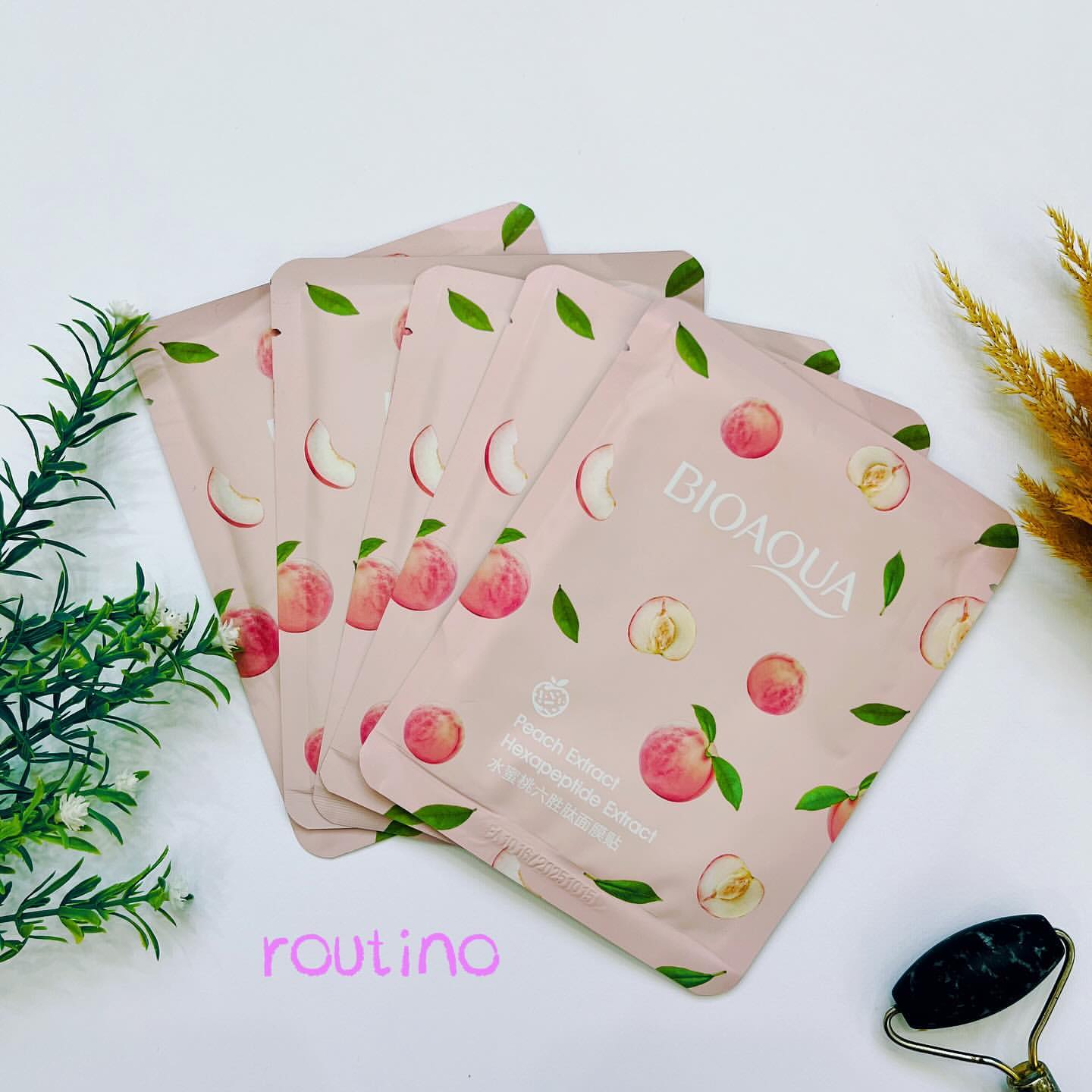 سلام قشنگا امروز یه ماسک خوشگلِ صورتیِ خوشمزه براتون موجود کردم فقط کافیه یکبار ازش استفاده کنی مطمئننننم عاشقش میشی ماسک ورقهای هلو از برند محبوب BIOAQUA حاوی عصاره شکوفه هلو حاوی ویتامین c آبرسان و مرطوب کننده روشن کننده و درخشان کننده لایهبردار پوست جلوگیری از خشکی پوست ضد چین و چروک شاداب کنننده جوانساز پوست ترمیم آفتابسوختگی پوست اگه داشتی بده و سیو یادت نره